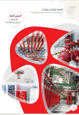 أجهزة الإنذار ومكافحة الحريق، إف إم ،200 نظام إخامد الحريق، أجهزة استشعار تسرب الغاز، أنابيب وتجهيزات فولاذية، مضخات الحريق (UL و UL Non(، منتجات السيطرة على الدخان والحريق، أنظمة تحكم بضغط الهواء في غرف السلامل، ودش الطوارئ،